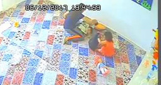 Güvenlik kamerasına yansıyan sınıf ortamındaki görüntülerde 1 ile 3 yaşları arasında değişen 4 çocuk görünüyor. 20'li yaşlardaki kadın bakıcı ise 1 yaşındaki M.T'yi uyutmaya çalışıyor. Uyumamak da ısrar eden çocuğu kollarıyla silkeleyip yere doğu itekleyen bakıcı yerde ayağı ile tekme atıyor. Bakıcı, diğer bir görüntüde ise çocuğun boğazını sıkıyor.