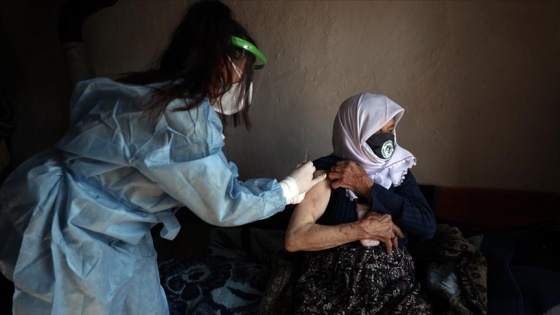 Yaşlı kadın, kendisini aşılayan sağlık ekibine şefkatli gözlerle baktı. Ekip üyelerinin ellerini bırakmayan Kara, devletin kendisine sunduğu bu imkan nedeniyle yetkililere teşekkür etti.