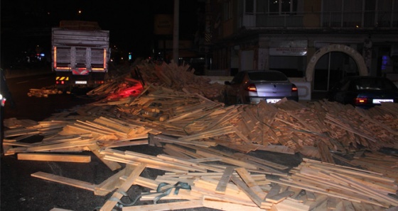 Kaza, bugün gece yarısı Dörtyol Kavşağı’nda meydana geldi. Edinilen bilgiye göre, Muhammet Hüsrev Gündal yönetimindeki 32 E 5191 plakalı kereste yüklü kamyon, kavşakta hızını alamayınca tonlarca kereste yola savruldu. Isparta’dan yüklenen keresteleri Aydın’a götüren şoförün aşırı yük ve hızlı gittiğini iddia eden mahalle sakinleri ise sürücüyü linç etmek istedi.