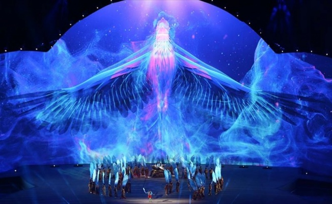 Azerbaycanlı ses sanatçısı Alim Kasımov'un sahaya kurulan minareden ezan okumasıyla devam eden açılış töreninde, Sarı Gelin türküsü eşliğinde gerçekleştirilen, İslam ve Türk kültürü unsurlarını barındıran gösteri, seyircilerin beğenisini topladı.