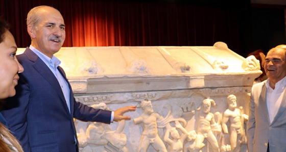 “Türkiye her açıdan zor dönemden geçiyor”Türkiye’nin her açıdan zor bir dönemden geçtiğini ifade eden Bakan Kurtulmuş, “Büyük ülkelerin sıkıntıları, büyük zorlukları olur. Yüksek dağların dumanı ve karı çok olur. Niye bizim buralarda çok fazla sis ve duman var diye sakın ha üzülmeyin. Bu kadar derin tarih ve kültürümüz olursa, bu kadar güçlü bir medeniyetiniz olursa başınızın sıkıntıdan kurtulmaması da doğaldır. Gittiğiniz zaman işte 10 bin sene önceki bir Göbekli Tepe, bin sene, 2 bin sene önceki köyleri olan bir coğrafyada oturuyoruz. Allah aşkına dünyanın maddi olarak gelişmiş ülkelerine gidin, kültür ve sanatta çok gelişmiş olduklarını söyleyen ülkelerin bir kısmına 500-600 yıllık köyleri yoktur. Birkaç yüz senelik varlıkları yoktur. Stratejik bakımından herkesin gözünü diktiği yer Anadolu toprakları, Türkiye ise, tarihi ve kültürel zenginliği bakımından herkesin gıpta ile izlediği ülkededir. Bu kültürel zenginliğimizden dolayı Allah’a şükrediyoruz. Millet olarak bu zenginliklerimizin farkında olduğunu ve kıymetini daha iyi bilmemiz gerektiğini ifade ediyoruz. İnşallah şuanda yeryüzüne çıkmamış olan, gün yüzüne çıkmamış olan eserleri de gün yüzüne çıkarmayı Allah bize nasip etsin. Farkındalık oluşturarak bu eserlerimize sahip çıkıyoruz. Herakles Lahdi Türkiye topraklarına, Anadolu topraklarına, ait olduğu yere hayırlı uğurlu olsun” diye konuştu.