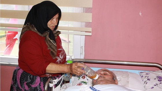 Trabzon'da, geçirdiği felç nedeniyle yaklaşık 4 yıldır yatağa bağımlı yaşayan Sabri Rogob'a, 57 yıldır aynı yastığa baş koyduğu eşi adeta bebek gibi bakıyor.