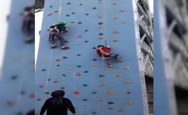 Kahramanmaraş’ta tırmana parkuruna tırmanan 6 yaşındaki çocuk, 2 metre yükseklikten yere çakıldı. Olayı hafif sıyrıklarla atlatan çocuğun düşme anı kameraya böyle yansıdı.