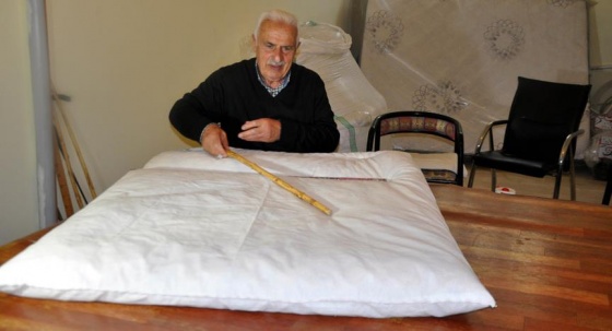 Yaklaşık 60 yıl önce Muş'a yerleştikten sonra yorgancı dükkanı açtığını ve oğlu Nazım ile çalıştığını ifade eden Bayram, iğnesini elinden hiç düşürmediğini söyledi.