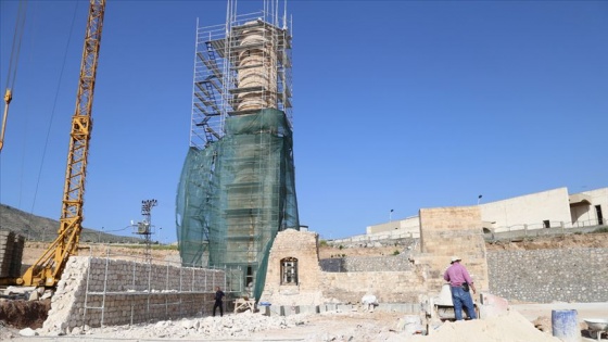 Batman'ın tarihi Hasankeyf ilçesinde yapımı tamamlanan Ilısu Barajı'ndan etkilenen ve arkeoparka taşınan Süleyman Han Camisi'nin 612 yıllık minaresi yeni yerinde yükseliyor.