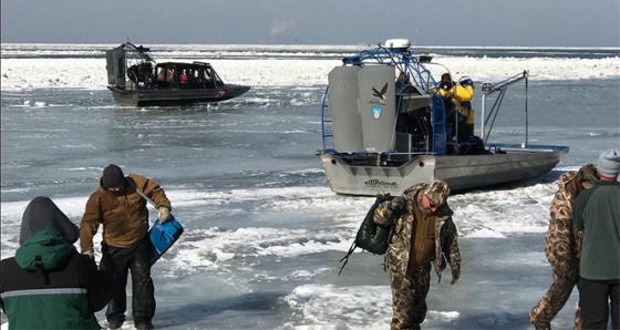 ABD'nin Ohio eyaletinin Ottawa kentinde balık tutmak için açıldıkları Erie Gölü'ndeki buz kitlelerinin kırılmasıyla 46 balıkçı mahsur kalmıştı.