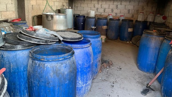 Adrese operasyon düzenleyen ekipler, aramalarda yapım aşamasında ve satışa hazır 4 bin litre sahte içki ele geçirdi.