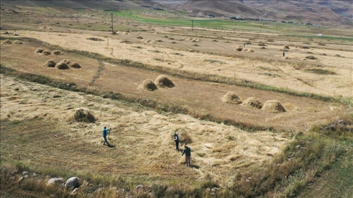 Kışın hayvanlarına yedirecekleri yemi hazırlamak için tarlada hummalı çalışma yürüten çiftçiler, işlerini bitirdikten sonra kar yağışı başlamadan Iğdır'a göç edecek.