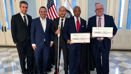 Merkezi Brooklyn'de olan Helen Keller Körlere Hizmet Kuruluşu mensuplarının yer aldığı WeWALK pilot projesinin tanıtımı Brooklyn Belediye Başkanı Eric Adams, WeWALK Proje Lideri Kürşat Ceylan ve WeWALK Uluslararası İş Geliştirme Müdürü Gökhan Meriçliler'in de katılımıyla New York'ta yapıldı.