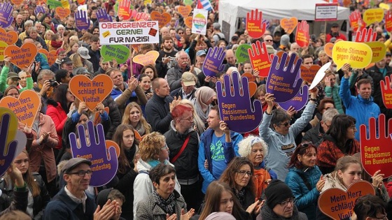 Almanya Sendikalar Birliği (DGB) başta olmak üzere birçok inisiyatifin destek verdiği gösteride, üzerlerinde "Irkçılığa yer yok", “AfD'yi durdurun" ve "Federal Meclis’te ırkçılığa hayır” yazan dövizler taşındı.