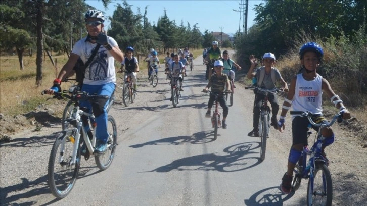 Etkinlikte, Naccar Mahallesi'nden başlayarak Hırka köyüne kadar pedal çeviren çocuklara aileleri de eşlik eti.