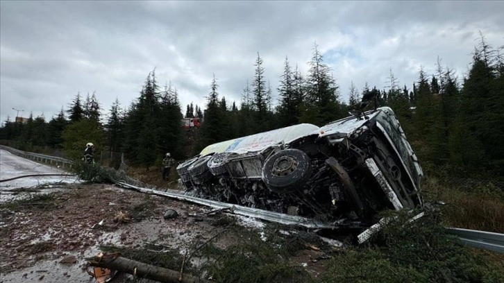 Kazaya karışan araçlardan LPG yüklü tanker, bariyerleri aştıktan sonra 30 metre ilerleyerek şarampole devrildi. Polis ekipleri sokağı trafiğe kapatırken, itfaiye ekipleri tankere köpükle müdahale etti.