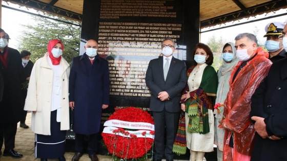 Heyet, açılışı yapılan anıta, "Yaşasın Türkiye-Pakistan kardeşliği" yazılı çelenk bırakarak, hatıra fotoğrafı çektirdi.