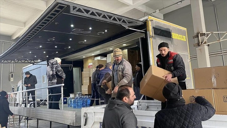 Deprem bölgesinde bulunan iki mobil mutfak tırı ile günlük 20 bin kişiye sıcak çorba ikramı yapılıyor. Sandviç, Beypazarı kurusu, bazlama, süt ve meyve suyu gibi hazır tüketim ürünleri de afet bölgesindeki vatandaşlara dağıtılıyor.
