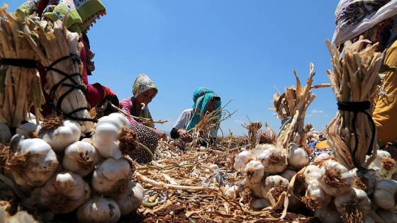 İlkbahar yağışlarının bolluğu dolayısıyla rekoltede artış beklenen ve tarladan ihracatçı firmalara ve diğer alıcılara verilen sarımsakta hasat devam ediyor.