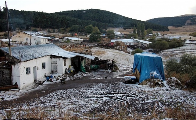 ARDAHAN (AA) - Ardahan'da, yüksek kesimlerde kar ve dolu etkili oldu.