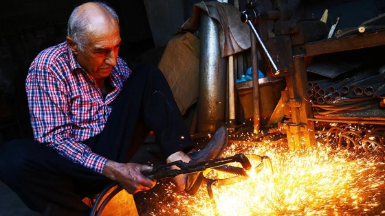 Osmaniye'de üvey babasının atölyesinde ateş, örs ve çekiçle tanışan 75 yaşındaki Mehmet Çolakkadı, 50 yıldır soğuk ve sert demire çekiçle şekil veriyor.