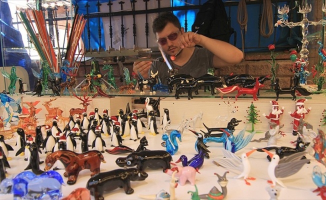 Duran, çocukluğunda usta çırak yöntemiyle öğrendiği cam sanatını, ilçe merkezindeki tarihi Paspatur Çarşısı'ndaki tezgahında yaşatıyor.