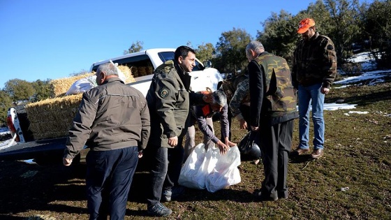 Yaban hayvanlarının yoğun olarak yaşadığı yüksek kesimlere çıkan avcılar ve ekipler, doğaya 200 kilogram sakatat ile 400 kilogram buğday ve saman bıraktı.