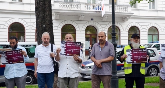 Viyana’daki Katar Büyükelçiliği önünde Katar’a uygulanmak istenen ambargolar, "Katar yalnız değildir, ambargoya hayır’’ yazılı pankartlar açan bir grup gösterici tarafından protesto edildi. Gösteri organizatörü Viyana Mısırlılar Cemaati Sözcüsü İbrahim Ali, İHA’ya yaptığı açıklamada, "Bazı Müslüman ülkeler tarafından haksız yere cezalandırılmak istenen Katar’a destek olmak, Katar halkının yalnız olmadığını Avusturya’dan dünya kamuoyuna duyurmak için burada toplandık. Katar, mazlum insanlara ve dünya Müslümanlarına destek olan sayılı ülkelerden biridir. Bu ülkeye yönelik tutum tesadüf değil, çok daha önceden planlandı. Katar, Mısır’da demokratik yollarla seçilmiş ilk Cumhurbaşkanı Muhammed Mursi’yi, Suriye halkını ve geçen yıl Türkiye’de kalkışılmak istenen darbe girişiminde Türkiye’nin yanında yer aldı. Katarı cezalandırmak istiyorlar, çünkü Katar her zaman devrimcileri destekledi, Türkiye’yi destekledi. Demokratik yollarla seçilmiş Doktor Muhammed Mursi’nin yanında yer aldı. Yardıma muhtaç dünya Müslümanlarının yanında hep Katar'ı gördük. Viyana’da bu gösteriye farklı din ve etnik kökenden birçok kişi katıldı. Katar’a destek gösterilerini sürdüreceğiz’’ dedi.