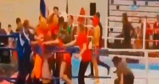 Önce iki sporcu arasında başlayan kavga, köşelerin de dahil olmasıyla büyüdü ve ortalık adeta savaş alanına döndü. Yumruk ve tekmelerin havada uçuştuğu kavga, Ermenilerin salonun dışına kovalanmasıyla son buldu.