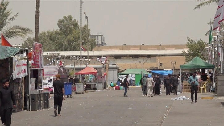 İran destekli Şii Koordinasyon Çerçevesi'ne bağlı kişilerin oturma eylemine ev sahipliği yapan alan, kurulan rengarenk çadırlarla eski halinden oldukça uzak.