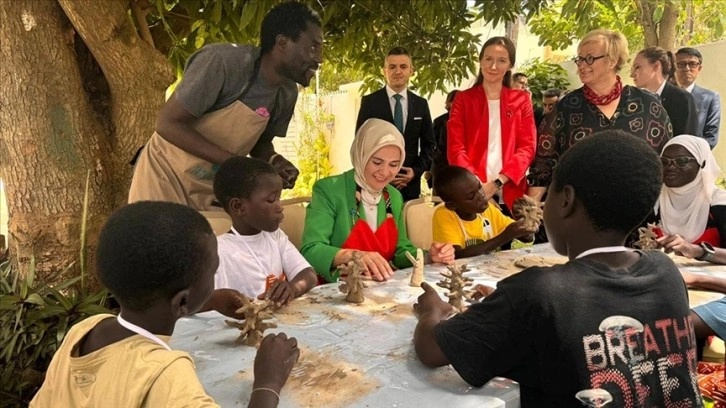 Göktaş, yetim çocukların sosyal hayata entegrasyonunu desteklemek amacıyla Dakar YEE tarafından düzenlenen çömlek atölyesinde çocuklarla Afrika'nın sembollerinden baobab ağacı heykeli yaptı.