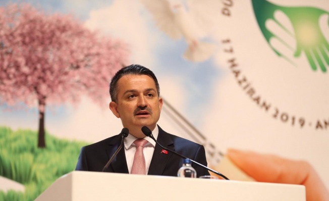 Tarım ve Orman Bakanı Bekir Pakdemirli, Türkiye’nin çölleşme risk haritasının hazırlandığını söyledi. Son 16 yılda yapılan çalışmalarla 30 bin futbol sahası kadar toprağın taşınmasının önlendiğini belirten Bakan Pakdemirli, ”Hedefimiz 7 milyar fidan“ dedi.