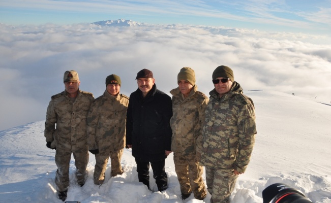 Bakan Soylu ve beraberindekiler, daha sonra yoğun kar yağışı nedeniyle yaklaşık 3 saat süren zorlu yolculuğun ardından Büyükçiftlik beldesinde bulunan 2 bin 970 rakımlı Evliya Tepe Üs Bölgesine geçti.