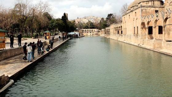 Balıklıgöl'ü ziyaret için Türkiye'nin farklı bölgelerinden gelen turistler de balıklara yem atarak fotoğraf çektirdi.Muhabir: Müslüm Etgü, Halil Fidan