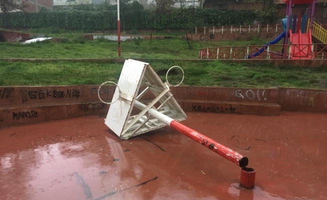 Basketbol potası bir arda Gökmen’in üzerine devrildi.