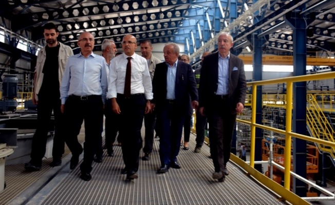 2018 yılı ortasında üretime başlaması planlanan tesis ile ilgili Cengiz Holding Yönetim Kurulu Başkanı Mehmet Cengiz'den bilgi alan Şimşek, üretim sahasını gezdi.