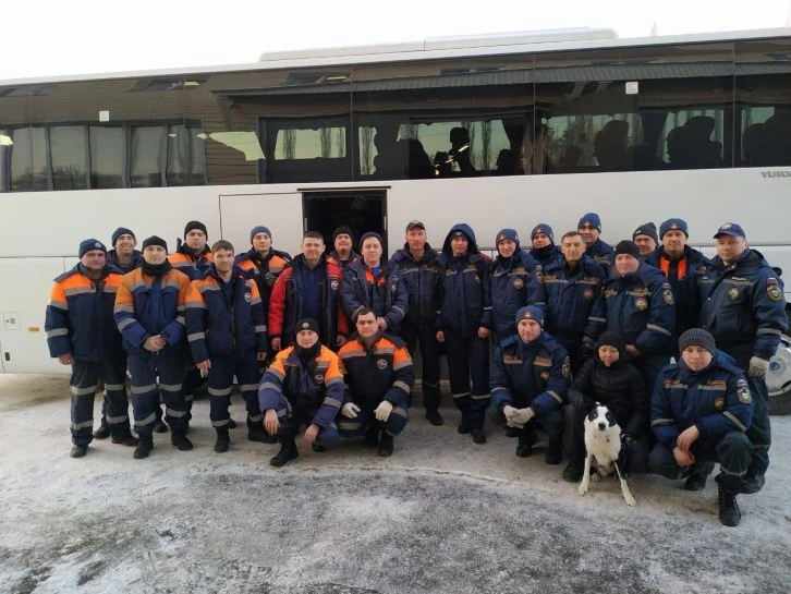 Rusya Federasyonu’na bağlı Başkortostan Cumhuriyeti'nden Torin isimli eğitimli bir köpekle birlikte 25 kişilik gönüllü Başkurt ekip, arama-kurtarma operasyonlarına katılıyor