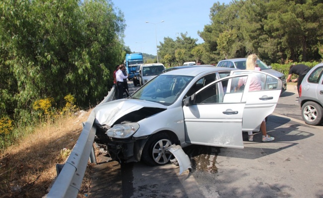 Milas- Bodrum karayolunda seyreden otomobil, sürücüsü direksiyon hakimiyetini kaybetmesi sonucu refüje çıktı. Refüjdeki aydınlatma direğine çarpıp yıkan otomobil, ardından Milas istikametine seyreden şehirlerarası yolcu otobüsüyle hafif şekilde çarpışıp yolu diğer tarafındaki çelik bariyerlere girdi.