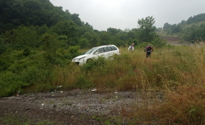 Düzce’de bayram nedeniyle memleketlerine giden ailenin bulunduğu otomobil, sürücüsünün direksiyon hakimiyetini kaybetmesi sonucu ağaçlık alana uçtu. Otomobilde bulunan 3 kişi yaralandı.