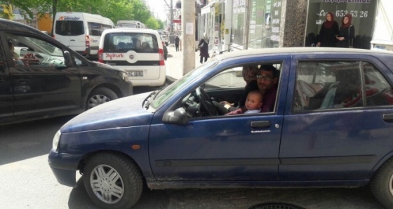 Tekirdağ'ın Çorlu ilçesinde Bulvar yolunda trafik içerisinde seyreden bir otomobilde, sürücünün kucağında küçük bir bebeğin yer aldığını görenler, hayretler içinde kaldı. Seyir halinde ilerleyen ve kucağında bebek olduğu halde yola devam eden, şoförü çevrede gören vatandaşlar ise, bu duruma tepki gösterdi. Etraftaki tepkileri dikkate almayan bebekli sürücü, daha sonra şaşkın bakışlar arasında uzaklaşarak gözlerden kayboldu.