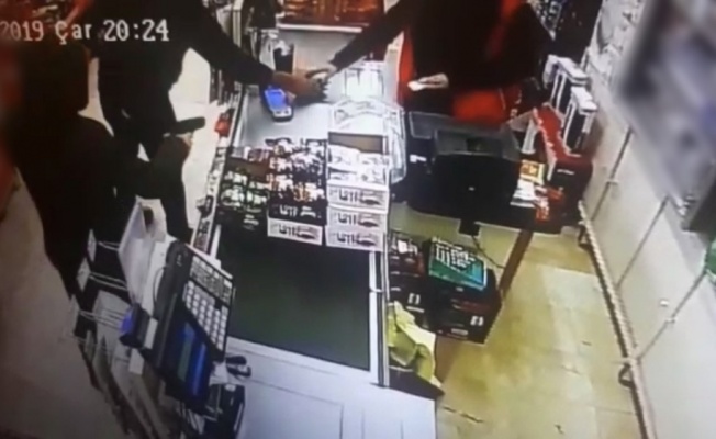 Antalya’da silahlı ve bıçaklı iki şahsın bir market zincir şubesinden soygun girişimi market çalışanın sopayla müdahalesiyle başarısız oldu. O anlar kameralara yansıdı.