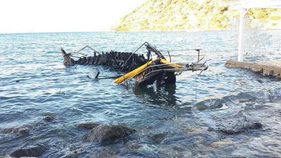 Bodrum'da yıldırımın isabet ettiği tekne yandı