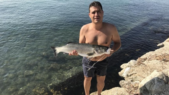 Olay yerine gelen dalgıçların arama çalışmaları yaptığı esnada Namlıoğlu, elinde yaklaşık 10 kiloluk levrekle karaya çıktı.