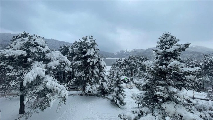 Kent merkezine 35 kilometre uzaklıktaki milli parkta iki gündür aralıklarla kar yağışı sürüyor. Kar kalınlığının yarım metreye ulaştığı Abant'ta bulunan gölün yüzeyinin bir kısmı buz tuttu.