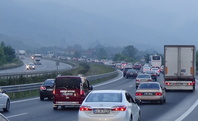 Vatandaşlar 9 günlük Ramazan Bayramı tatilinde tatil bölgeleri ve memleketlerine gitmek için yola düşerken, TEM otoyolunun Düzce kesimi Bolu Dağı mevkiinde trafik zaman zaman durarak ilerliyor.