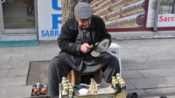 Kahramanmaraş'ın Elbistan ilçesinde 87 yaşındaki Ömer Kurtoğlu, babasının hayatını kaybetmesinden 6 yıl sonra ailesine bakabilmek için başladığı ayakkabı boyacılığını 65 yıldır yapmaya devam ediyor.