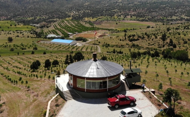 Erzincan’da iş adamı Yavuz Peker, tüm araziyi gören tepenin üzerine yaptırdığı döner evde manzaranın keyfini çıkartıyor.