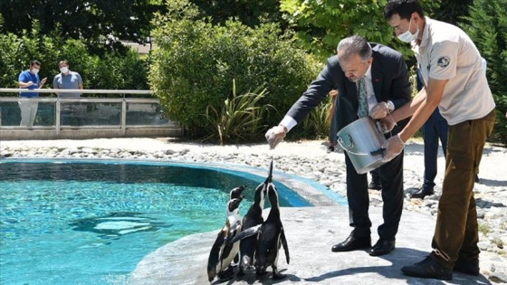 Hayvanat bahçesini ziyaret eden Bursa Büyükşehir Belediye Başkanı Alinur Aktaş, penguen "Kılıç"a kimliğini belirleyen yeşil beyaz renkli şerit taktı.