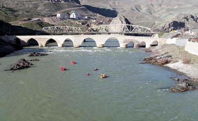 "İstanbul'u Bağdat'a bağlayan köprü'' olarak bilinen ve yaklaşık 1100 sene önce İpek Yolu güzergahında inşa edilen Palu Köprüsü'nün de üzerinde bulunduğu Murat Nehri'nde soğuk demeden çalışmalarını sürdüren 10'u erkek 12'si kız 22 sporcu, haziran ayında Tunceli Munzur Nehri'nde yapılması planlanan Dünya Rafting Şampiyonası için kürek çekiyor.