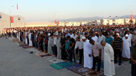 Kahramanmaraş'taki Geçici Barınma Merkezinde kalan 23 bin 900 Suriyeli ve Iraklı sığınmacı bayram namazını ülkelerinden uzakta kılmanın burukluğunu yaşadı.