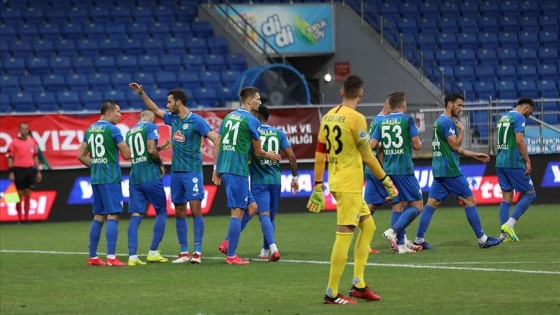 Rize 8. dakikada köşe vuruşunda takım arkadaşı ile paslaşan Mensah'ın ceza sahası dışı sol çaprazından vuruşunda, meşin yuvarlak az farkla üsten auta çıktı.