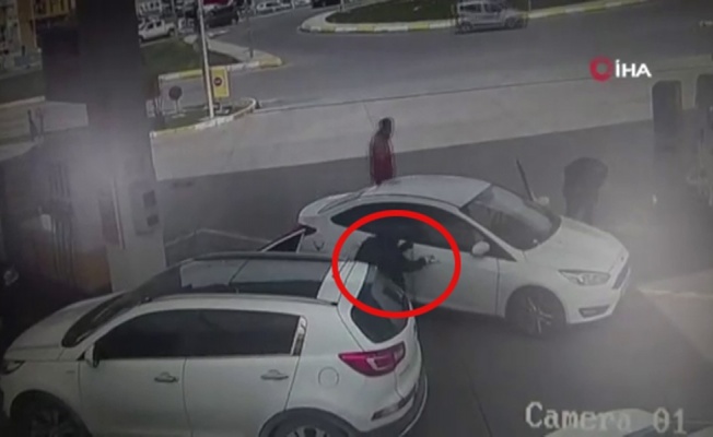 Olay yerine gelen polis ekipleri, inceleme başlattı. Öte yandan hırsızların benzinlikte araçtan hızlıca çantayı çalarak kaçtığı anlar güvenlik kamerasına saniye saniye yansıdı.