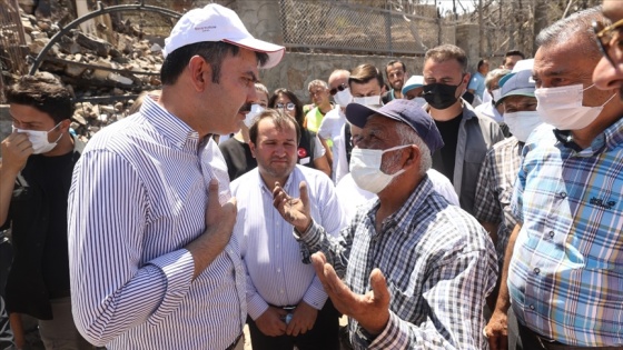 Bakan Kurum, Akseki ilçesi Kepezbeleni Mahallesi'ndeki yangında, evleri hasar gören vatandaşlarla bir araya gelerek geçmiş olsun dileklerini iletti.