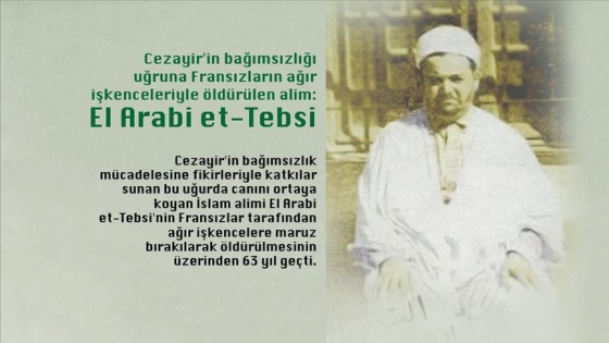 Cezayir'in bağımsızlık mücadelesine fikirleriyle katkılar sunan bu uğurda canını ortaya koyan İslam alimi El Arabi et-Tebsi'nin Fransızlar tarafından ağır işkencelere maruz bırakılarak öldürülmesinin üzerinden 63 yıl geçti.